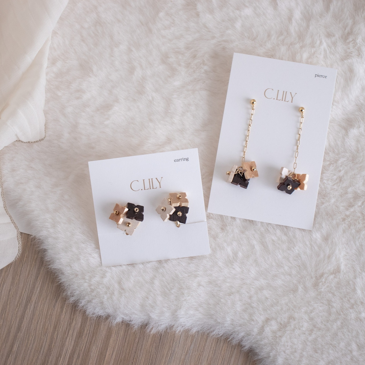 華やかで上品、けれどディテールは穏やかで温かい。木目やナチュラルな色合いを生かしながら上品さをプラスしたウッドアクセサリーのコレクションです。
