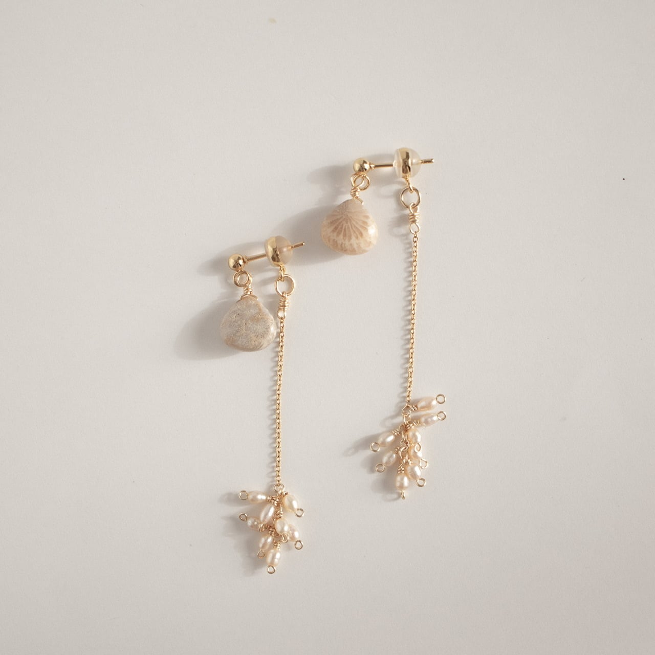 素 材:フォシルコーラル/淡水パール/ステンレスチェーン