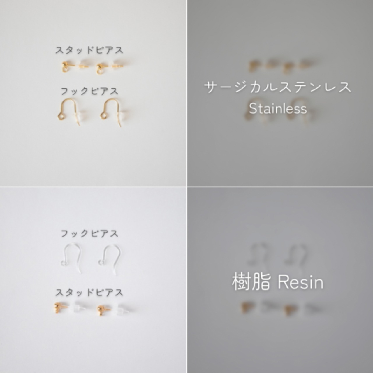 肌に触れる部分の金属(金具)において、当店ではステンレス/チタン/14kgf/樹脂など一般的にアレルギー対応素材とされる金具を使用しております。※一部対象外商品あり。