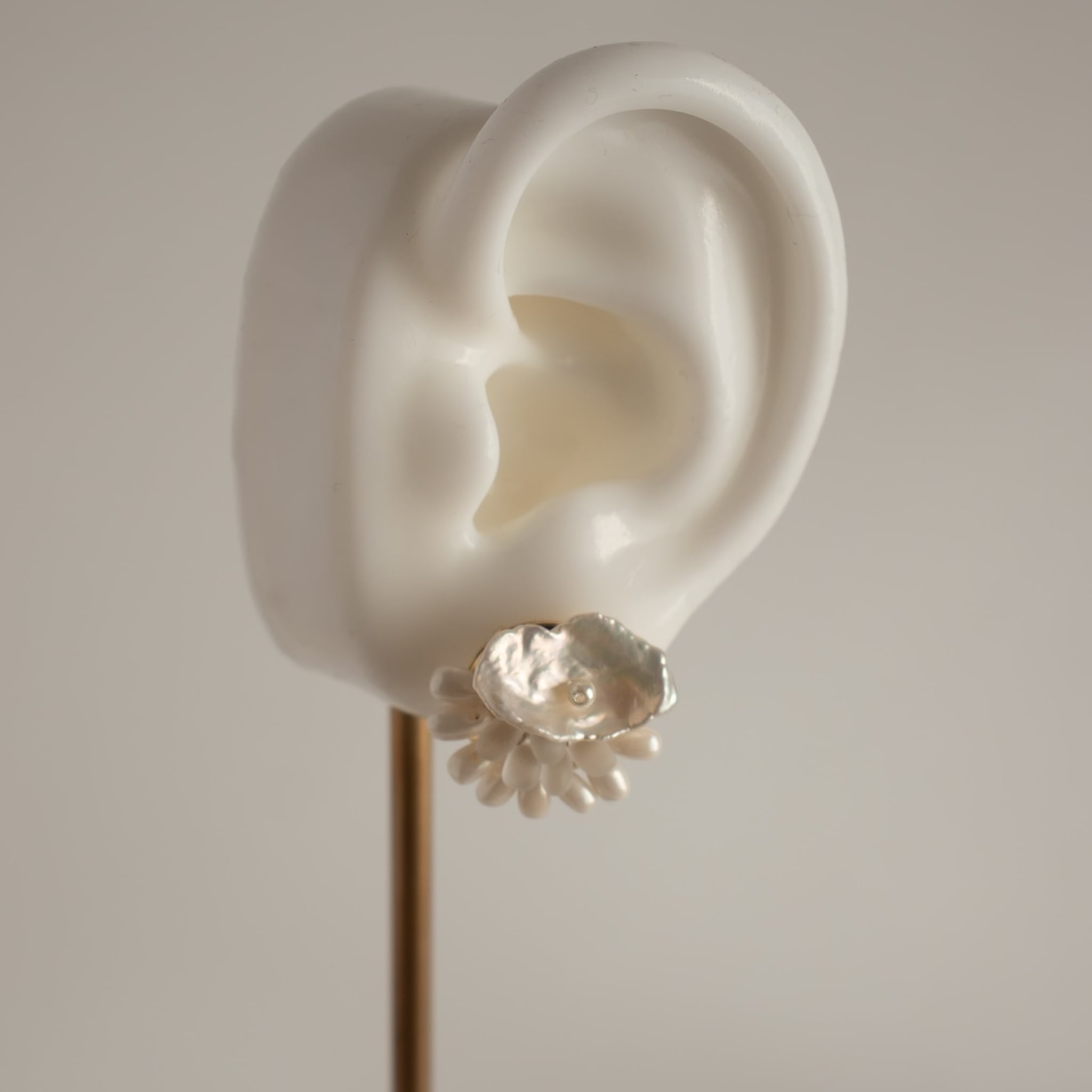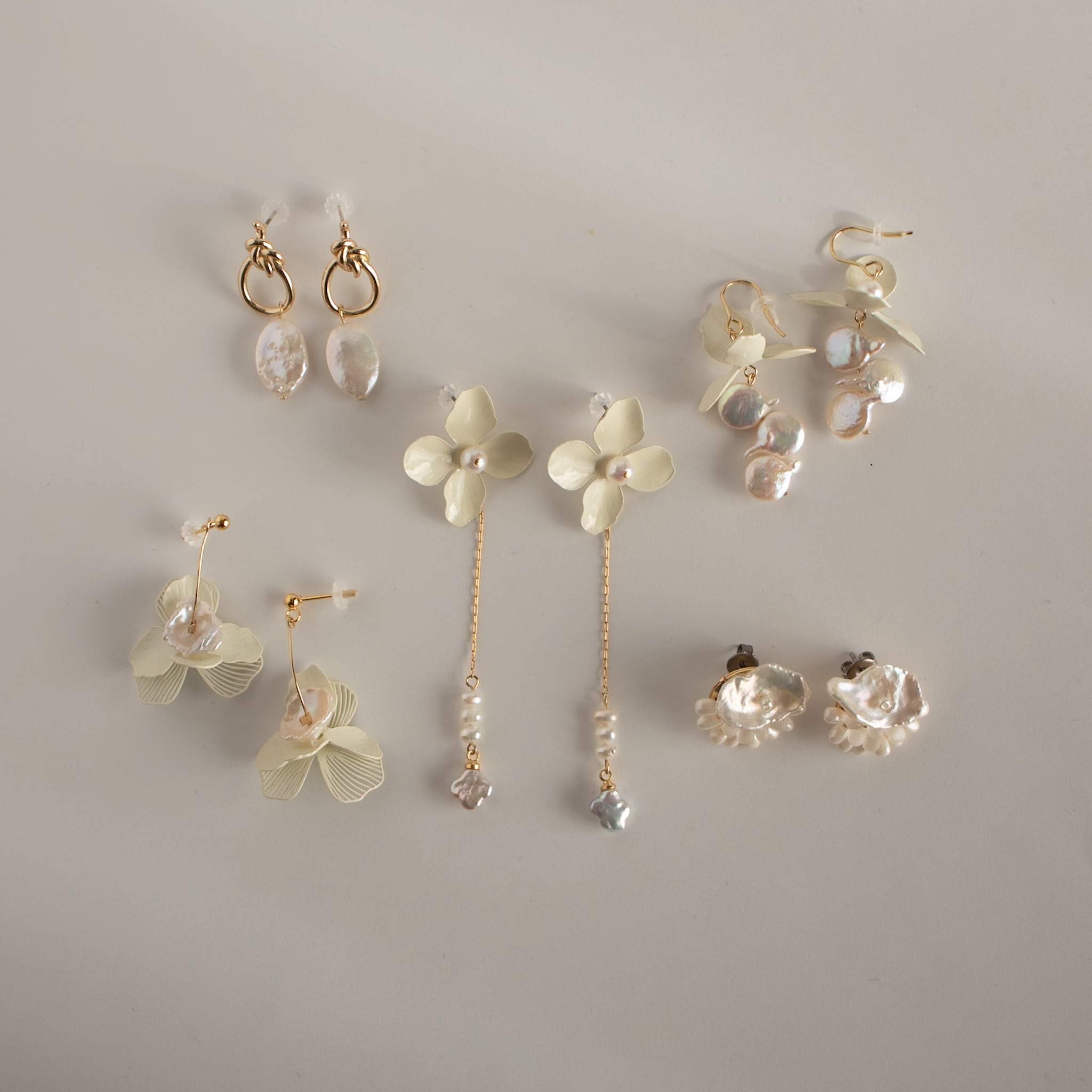 花びら淡水パールの形をそのまま生かし、お花に見立てて仕立てた耳飾りです。