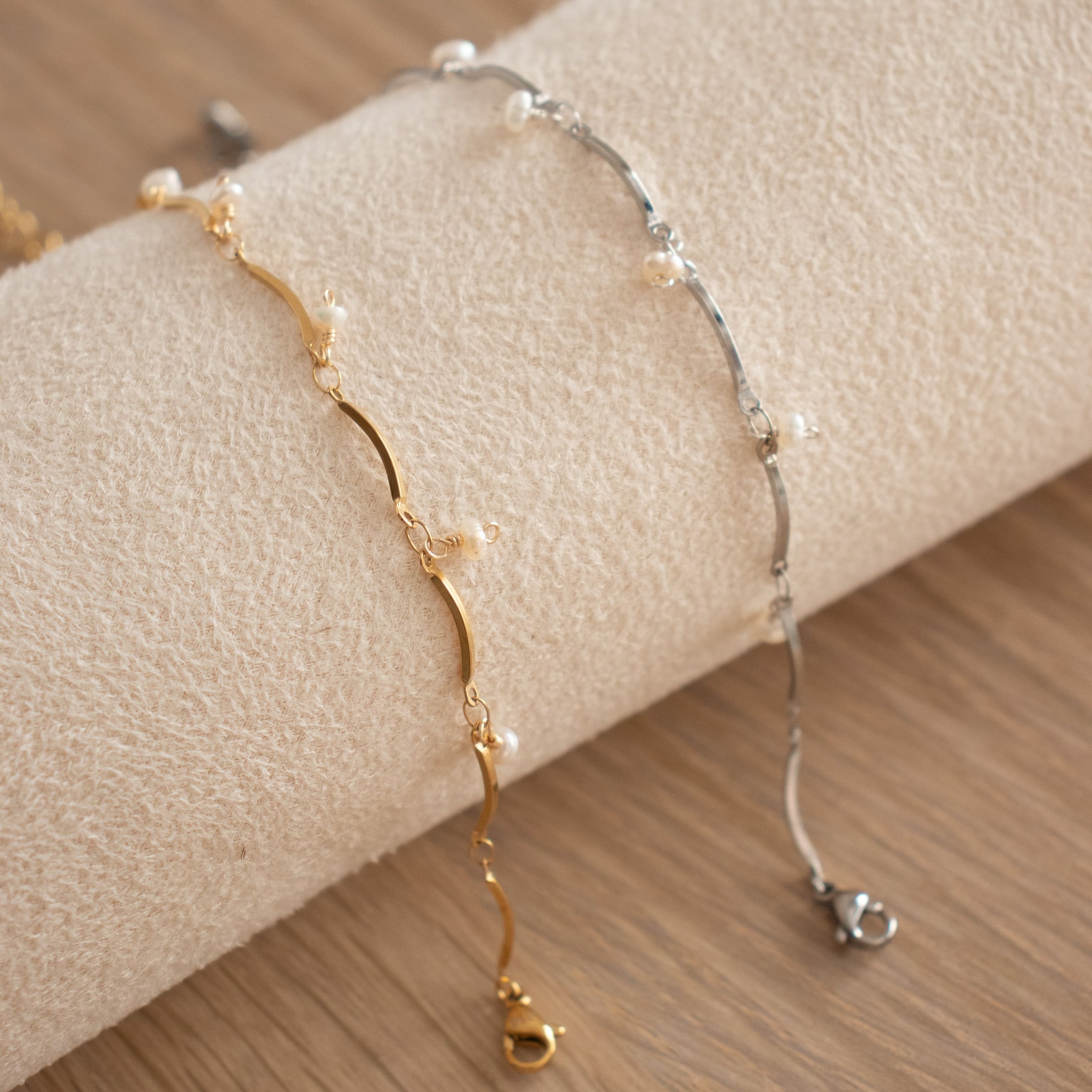 華奢なチェーンに極小淡水パールを散りばめた上品なブレスレット