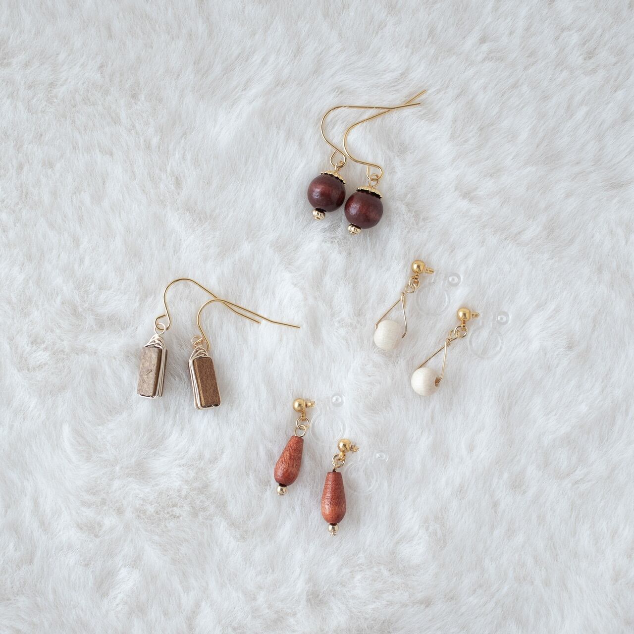 温もりあるwoodビーズを使用したナチュラルで上品なアクセサリー